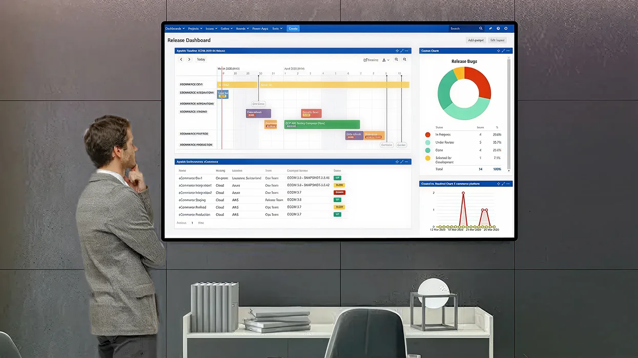 Sprint wall • Blockers board • Release countdown • Bug triage view