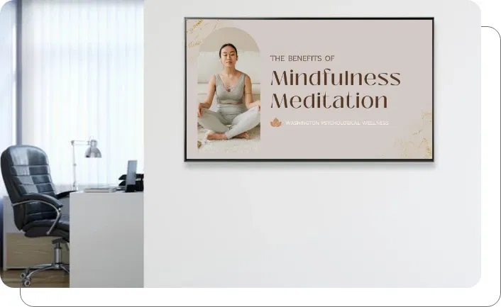 Break room digital signage can display serene visuals, that make the overall atmosphere appear calm amidst the daily corporate hustle. Furthermore, integrating short, mindful e-meditation sessions or wellness videos can promote mental well-being and stress management.